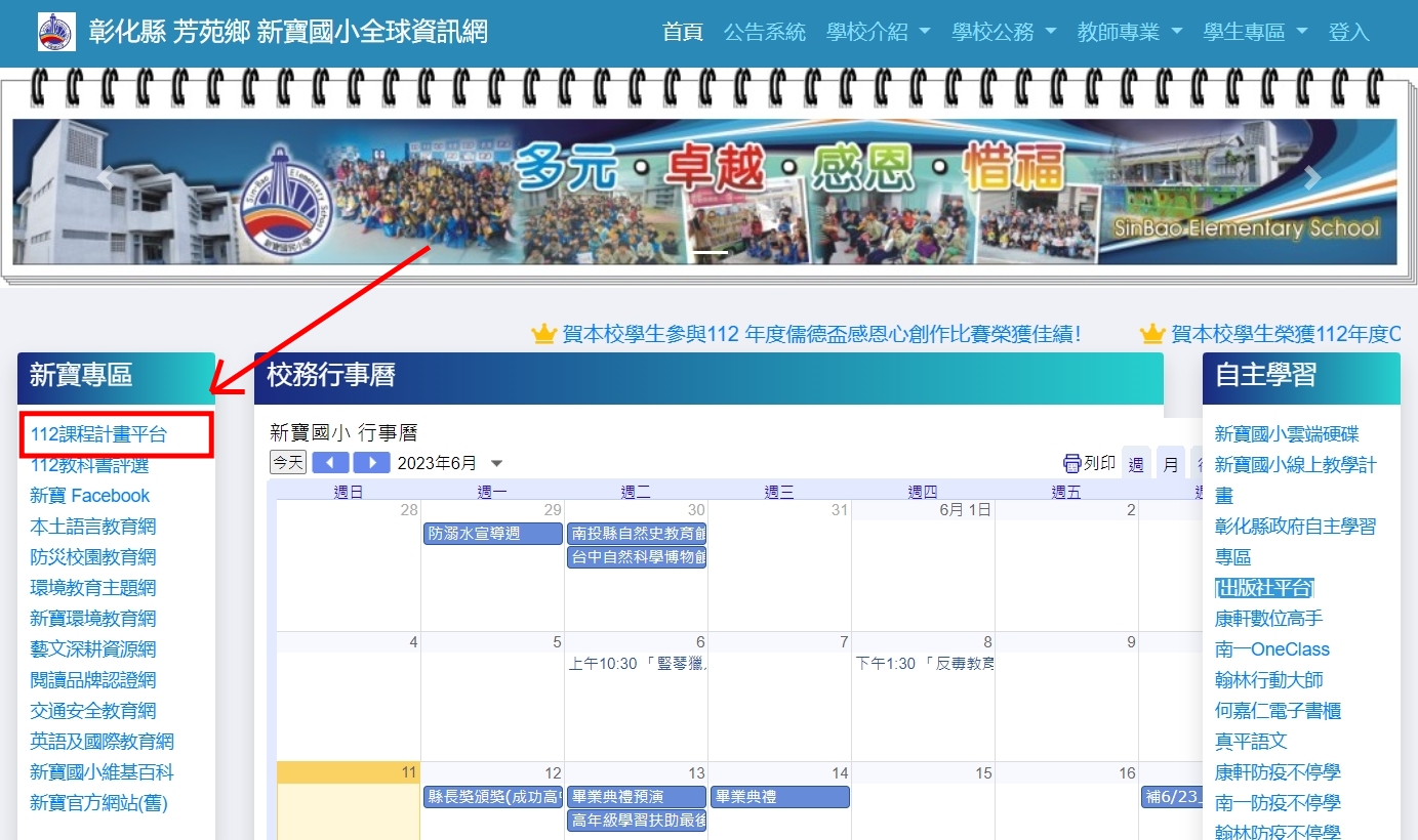 10-2 學校首頁放置連結「彰化縣國民中小學課程計畫平台」網站之截圖