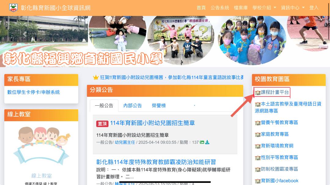 10-2 學校首頁放置連結「彰化縣國民中小學課程計畫平台」網站之截圖 |
