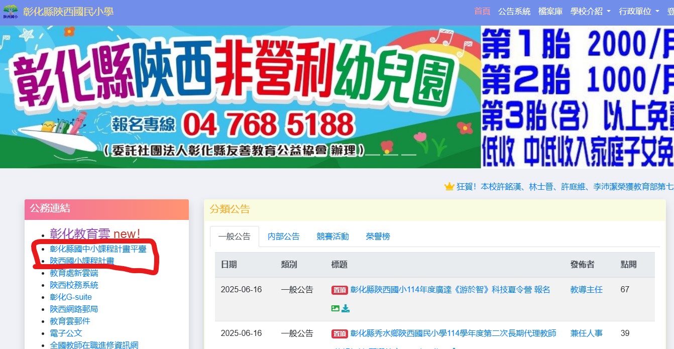 10-2 學校首頁放置連結「彰化縣國民中小學課程計畫平台」網站之截圖 |