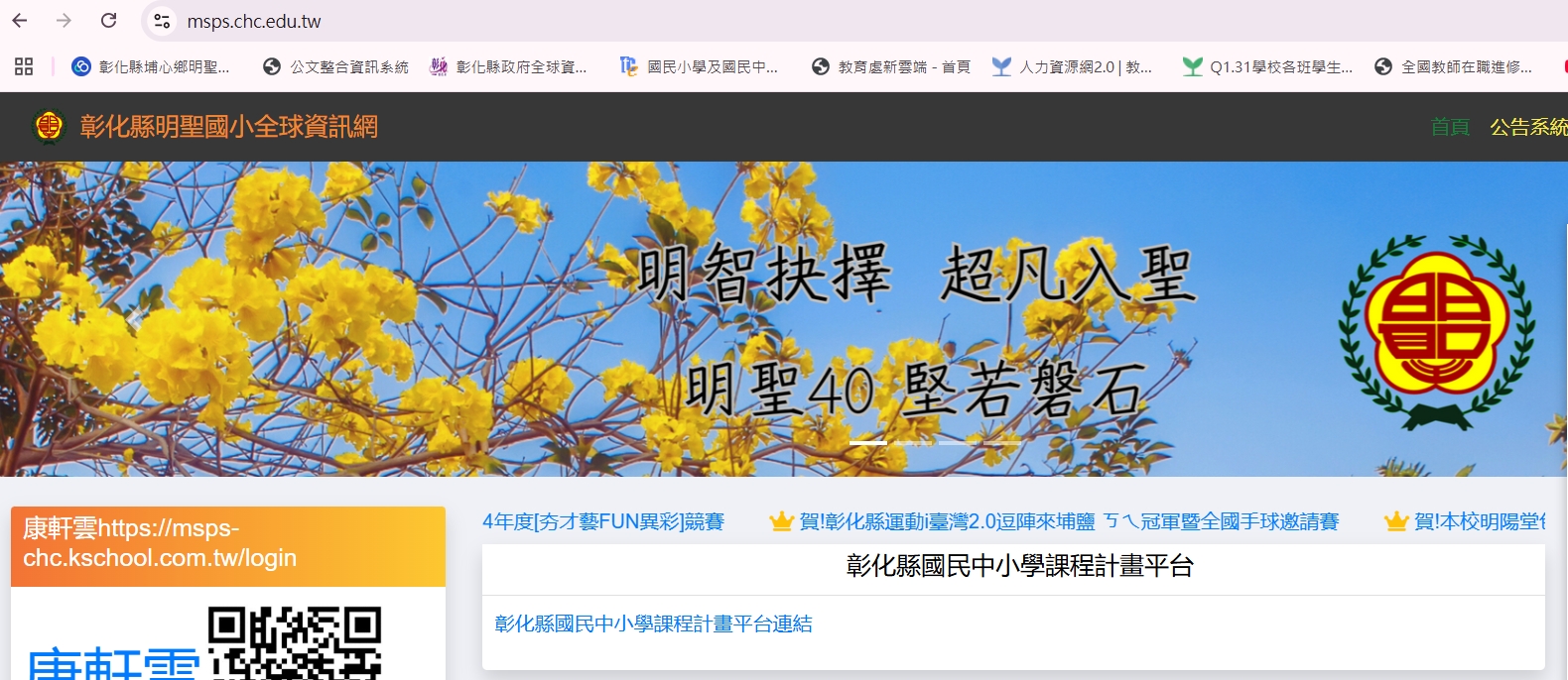 10-2 學校首頁放置連結「彰化縣國民中小學課程計畫平台」網站之截圖 |