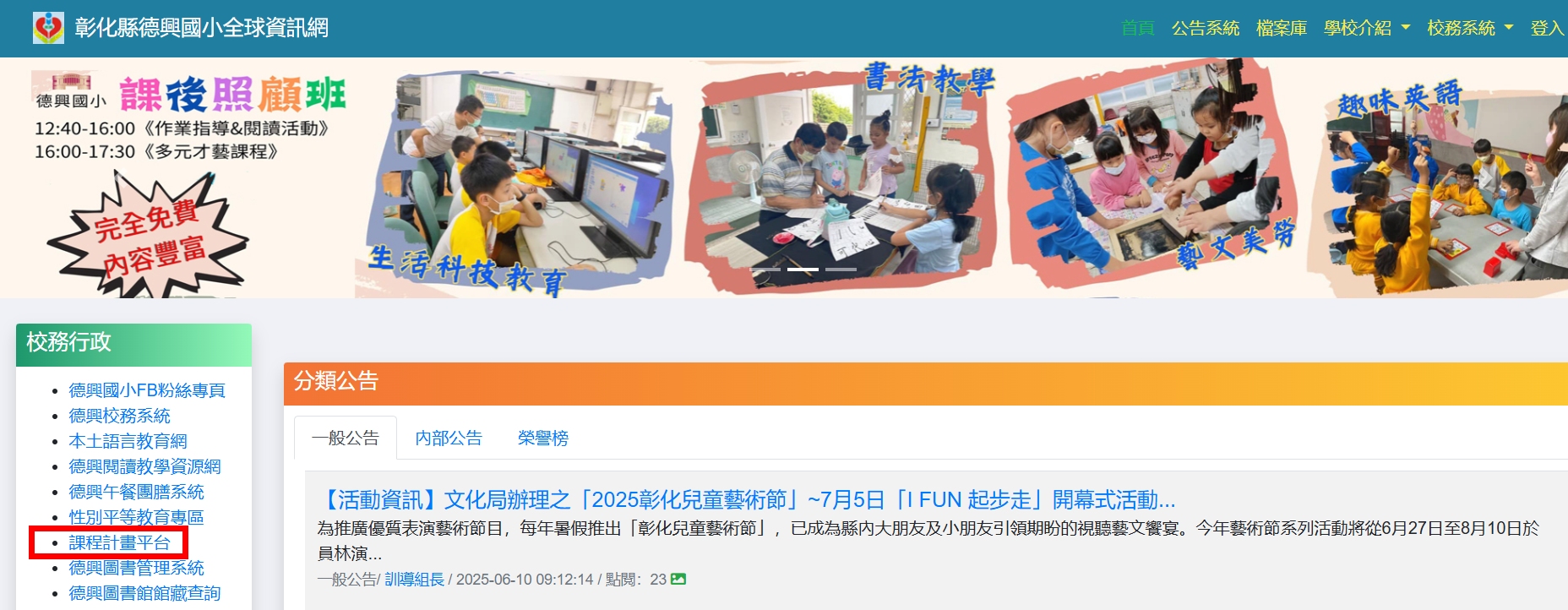 10-2 學校首頁放置連結「彰化縣國民中小學課程計畫平台」網站之截圖 |