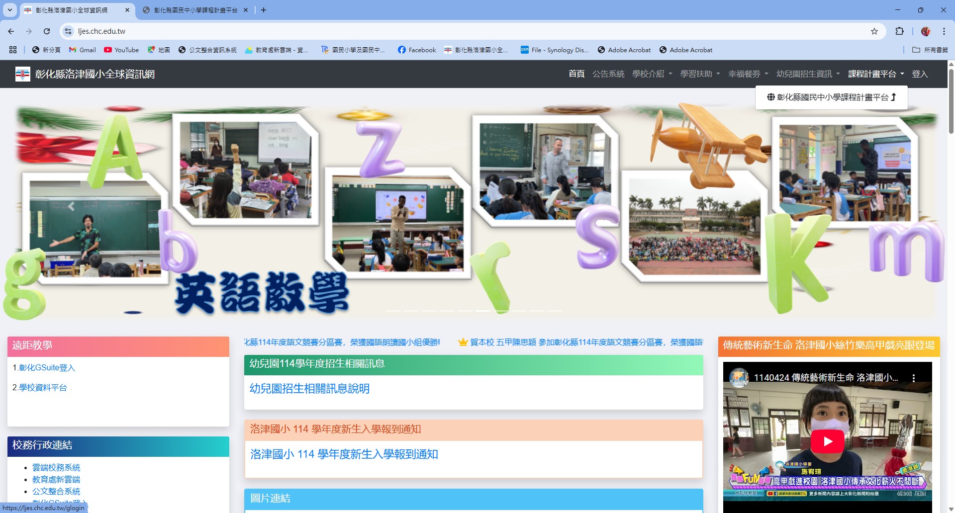 10-2 學校首頁放置連結「彰化縣國民中小學課程計畫平台」網站之截圖 |